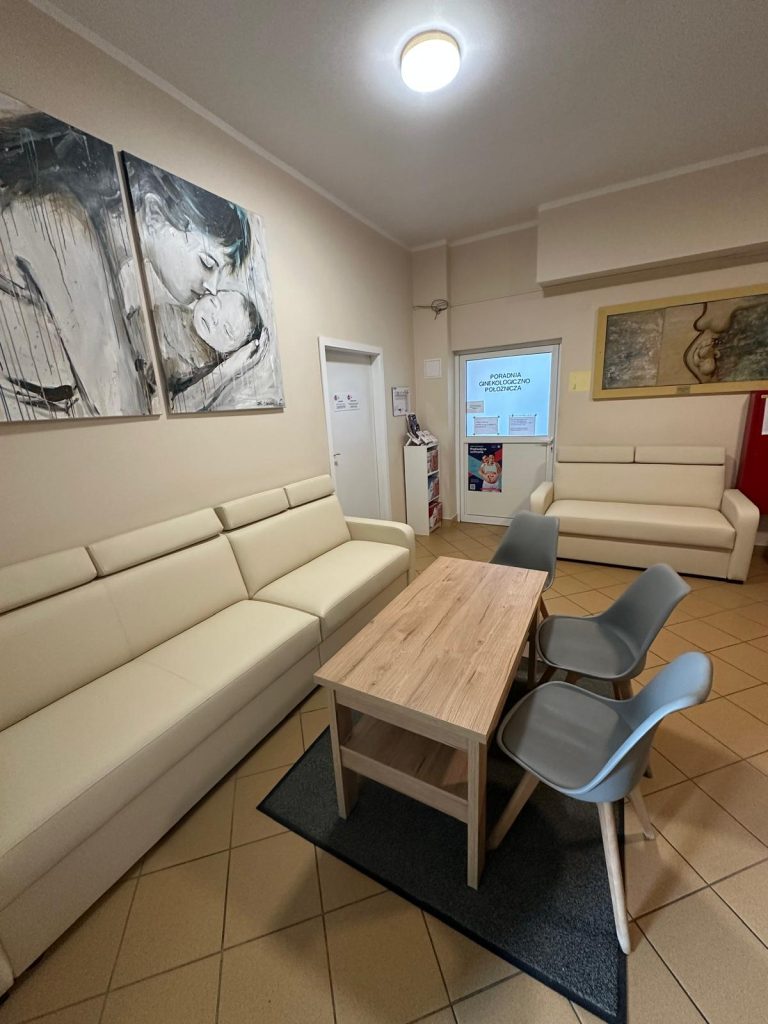 Poczekalnia przy Poradni Ginekologiczno-Położniczej została doposażona w nowe meble, poprawiające komfort pacjentek poradni ginekologiczno-położniczej, poradni KOC oraz osób towarzyszących.