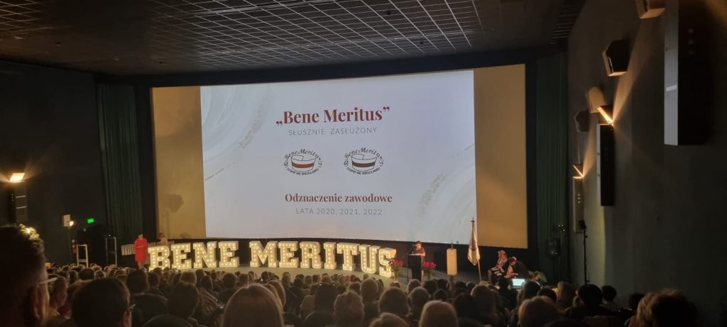 W dniu 17 maja 2022 roku odbyły się obchody Międzynarodowego Dnia Pielęgniarki i Dnia Położnej zorganizowane przez Dolnośląską Okręgową Izbę Pielęgniarek i Położnych. Uroczystości miały miejsce kinie Nowe Horyzonty we Wrocławiu. Z tej okazji zostały wręczone odznaczenia zawodowe za lata 2020-2022, ustanowione przez Dolnośląską Okręgową Radę Pielęgniarek i Położnych we Wrocławiu, „Bene Meritus”, czyli „Słusznie Zasłużony”, pielęgniarkom, pielęgniarzom i położnym za wyróżniającą się postawę zawodową, społeczną, przestrzeganie zasad etyki i profesjonalizm.