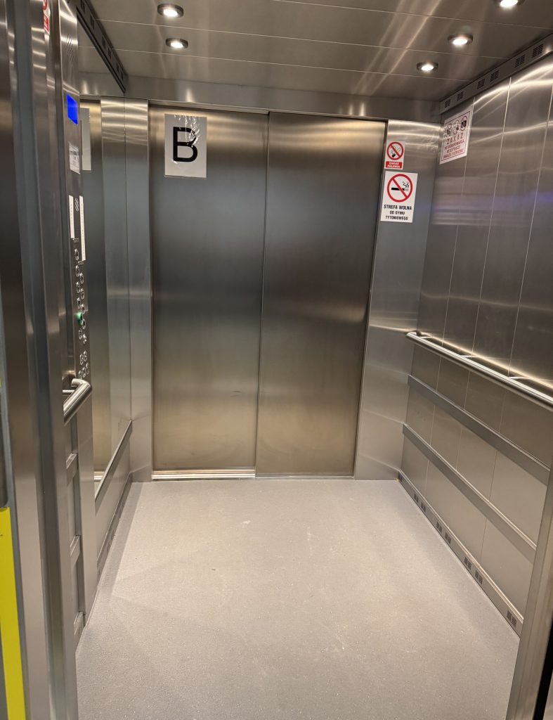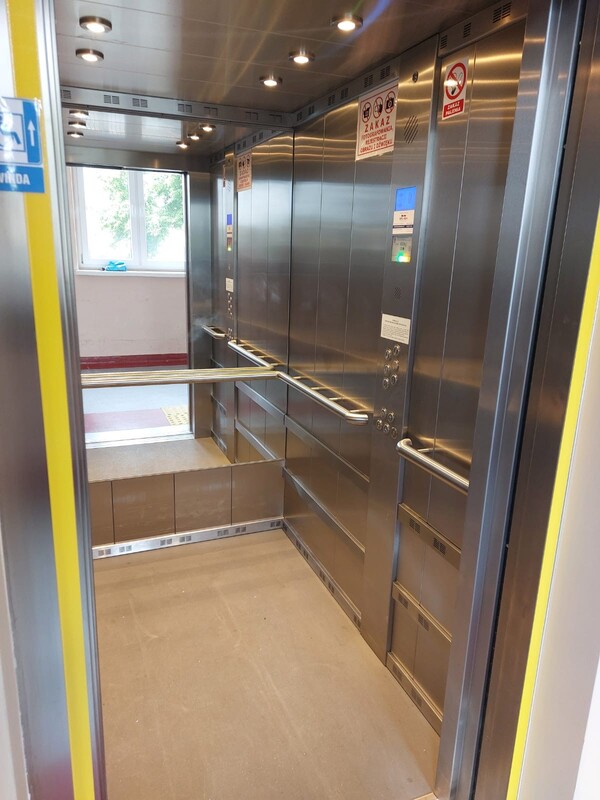 Nowe dźwigi w istotny sposób ułatwiają komunikację wewnętrzną szpitala oraz zwiększają komfort przemieszczania się osób niepełnosprawnych pomiędzy poszczególnymi kondygnacjami. Wzrost poziomu bezpieczeństwa pacjentów zapewnia zastosowany w kabinach wind system informacji multimedialnej, przyciski sterujące z oznaczeniami w postaci symboli Braille’a , a także system głośnomówiący powiadamiający o kondygnacji, na której aktualnie winda się znajduje.