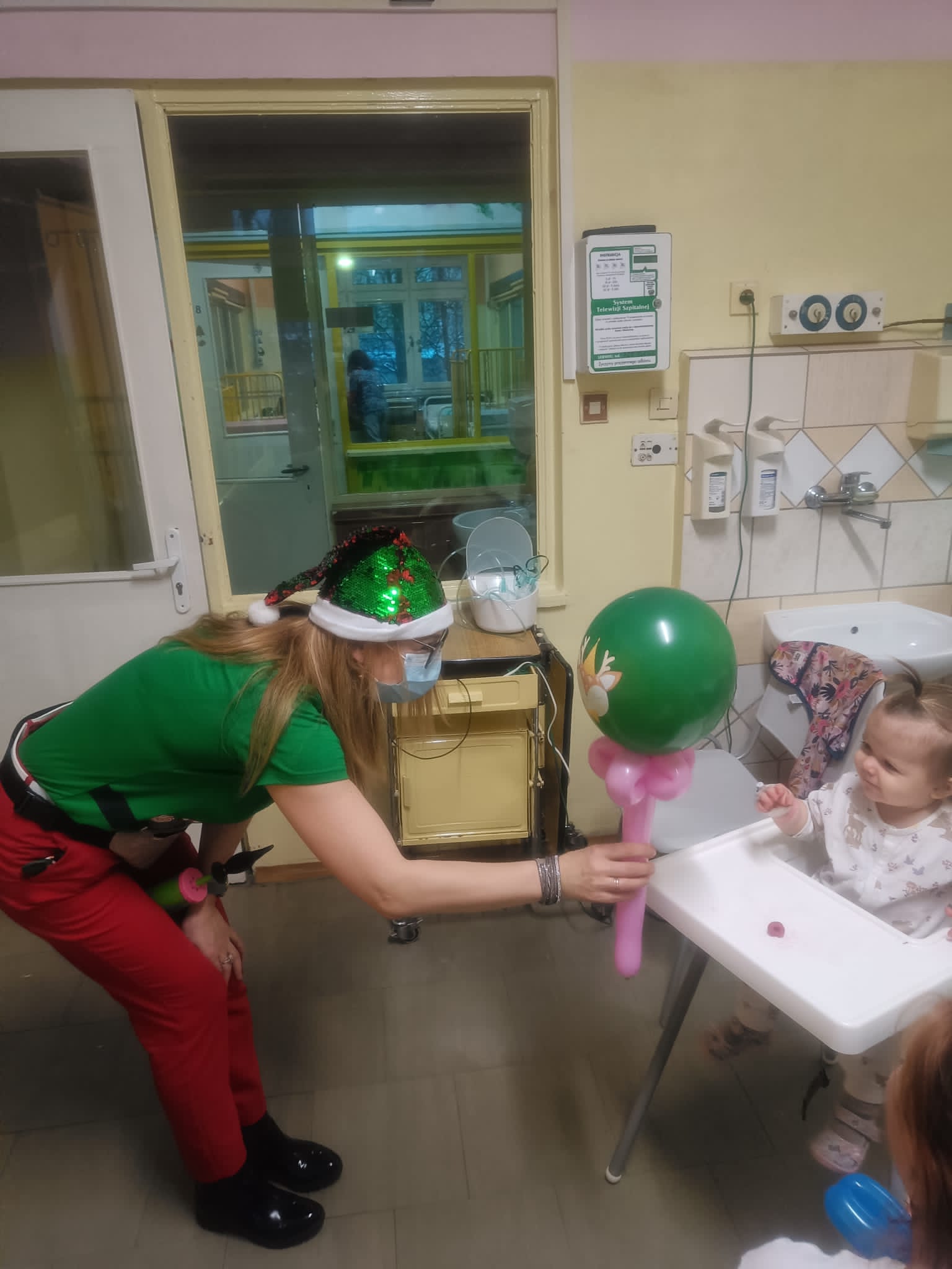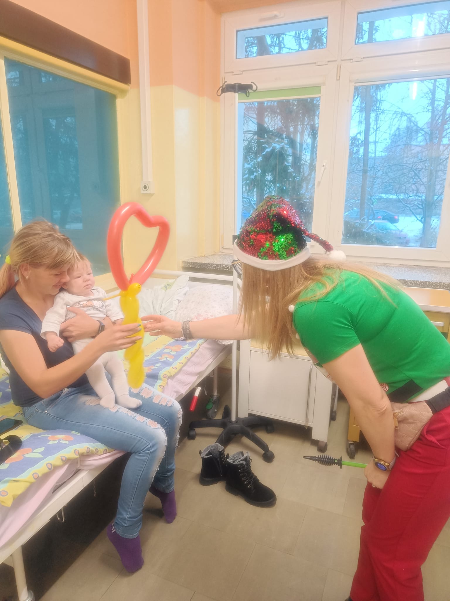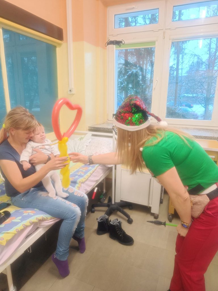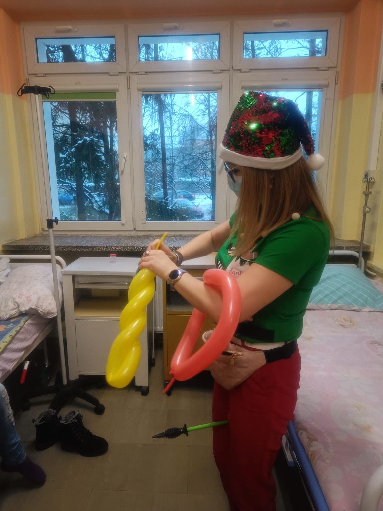 Dzieci spędzające mikołajki w szpitalnych salach miały szansę na chwilkę oderwać się od problemów zdrowotnych i możliwość uczestnictwa w zabawie tworzenia figurek z balonów.