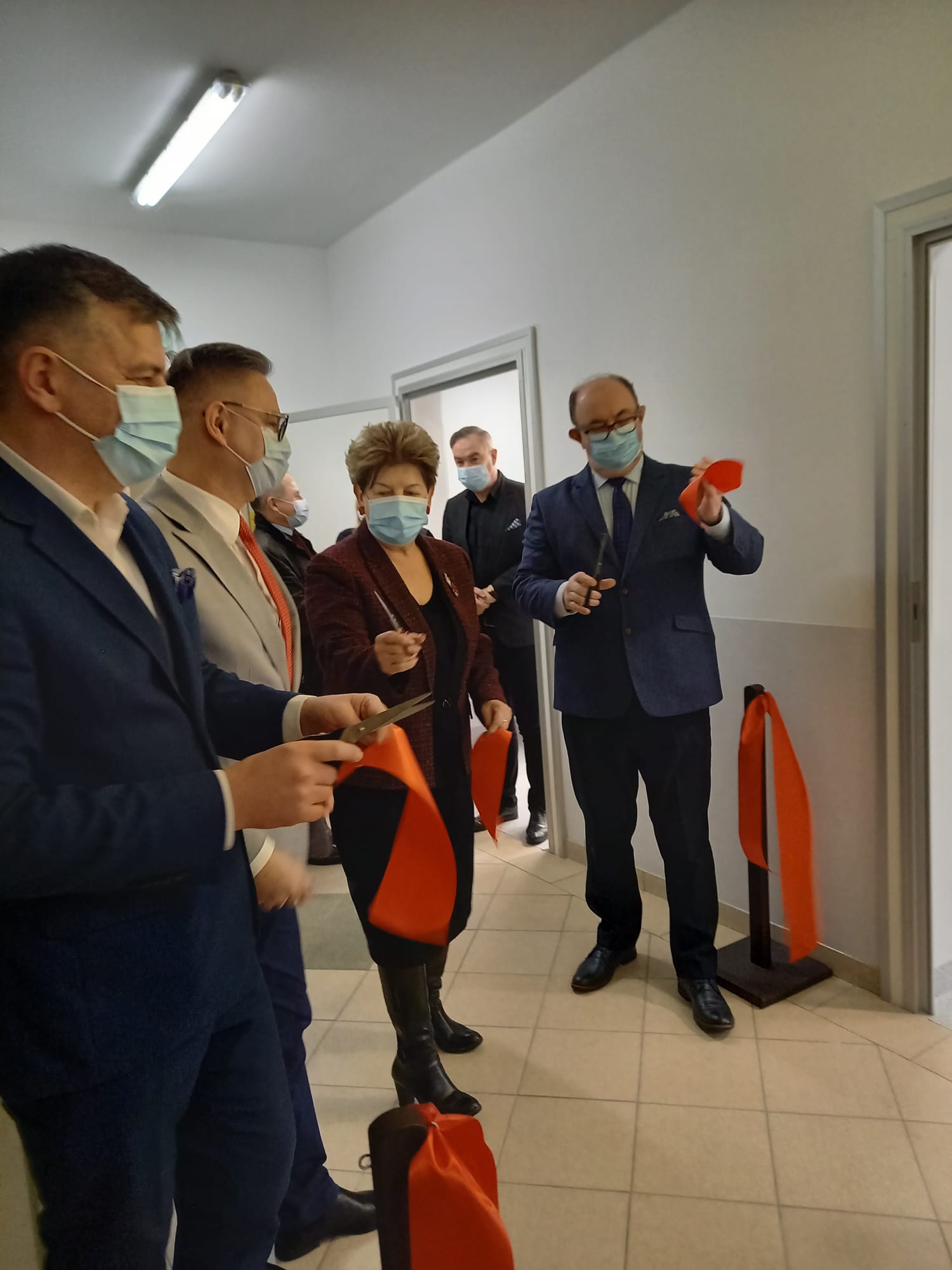 Uroczystego przecięcia wstęgi do nowej pracowni dokonali wspólnie Dyrektor Powiatowego Zespołu Szpitali Przemysław Magiera, Starosta Powiatu Oleśnickiego Sławomir Kapica, Burmistrz Oleśnicy Jan Bronś oraz członkini Zarządu Powiatu Oleśnickiego Zdzisława Jakimiec.